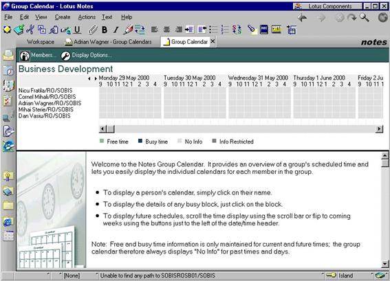 Caracteristicile versiunii Notes 5.0 permite sa va programati timpul dumneavoastra sau al altora chiar si deconectat fiind de server. Baza de date cu timpul liber poate fi replicata pe laptop-ul dumneavoastra in acest caz.