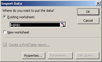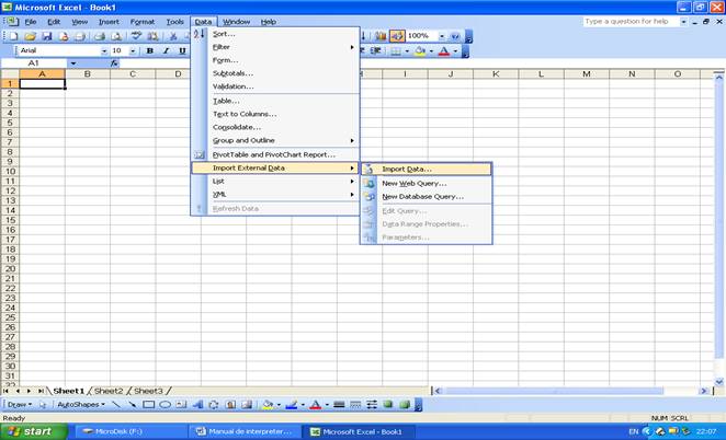 Se da clic pe optiunea Import External Data - Import Data din meniul de bare al documentului excel.