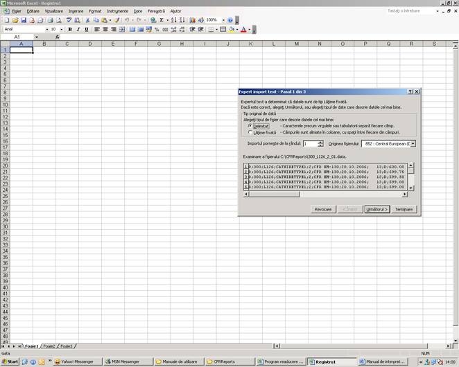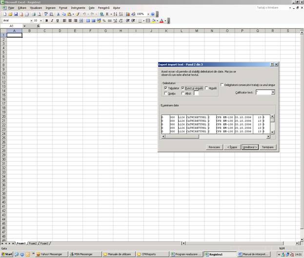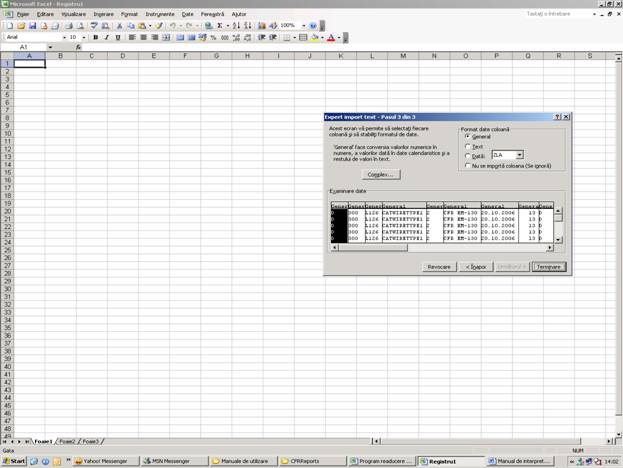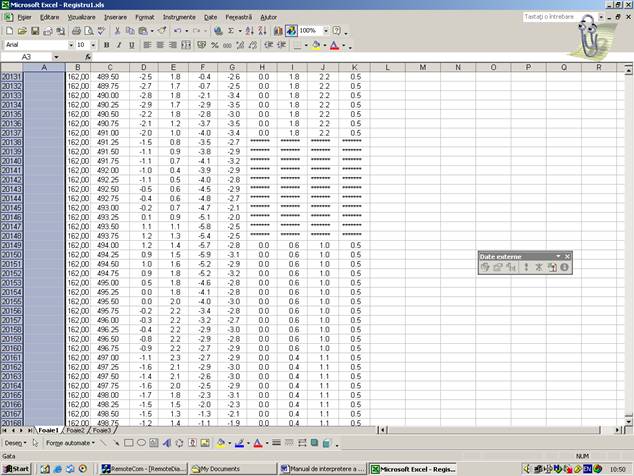 Prelucrarea datelor salvate cu extensia DATA se vor importa intr-un document excel.