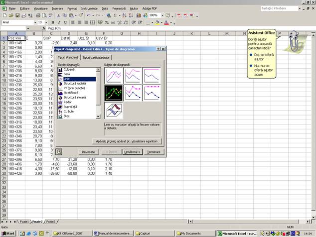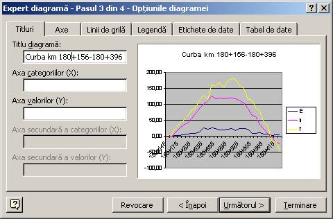 Se da Next> (Urmatorul) apare ecranul cu Optiunile diagramei unde se trece titlul dorit pentru acea diagrama (de regula se trece poz km a curbei)