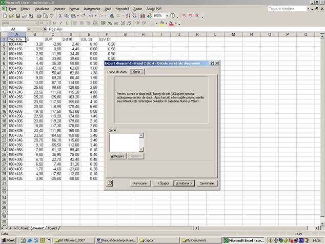 Se da comanda Add si se repeta actiunea pentru ceilalti paramerti. Valorile pozitive ale suprainaltarii si sagetilor dau informatia ca curba analizata este de dreapta. De aceea in grafic se vor folosi valorile sagetilor de pe firul stang. Valorile negative ale suprainaltarii si sagetilor dau informatia ca curba analizata este de stanga. De aceea in grafic se vor folosi valorile sagetilor de pe firul drept.