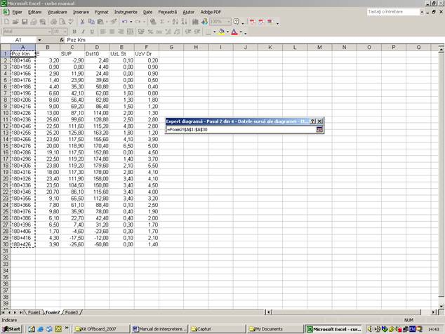 Se selecteaza casuta de la care dorim sa inceapa tabelul. Ex. pentru datele de geometrie se alege casuta A1, iar pentru datele de sina se alege casuta din randul 1 si prima coloana libera, apoi se da OK