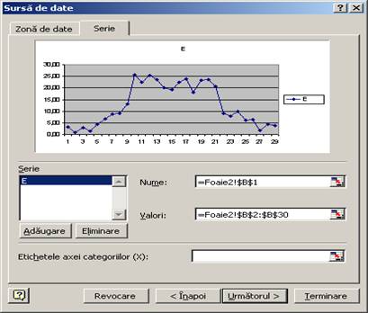 Se apasa Finish (Terminare). Pentru a salva graficul intr-un fisier nou se bifeaza casuta As new sheet (Ca foaie noua) unde se trece numele diagramei. Si se da Terminare
