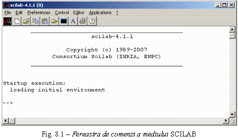 prin butonul Start → Programs → Scilab-4.1.1 → scilab-4.1.1