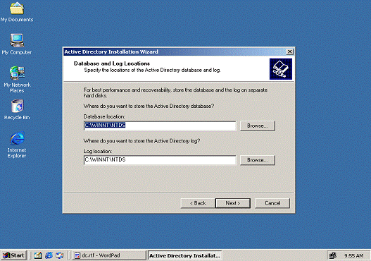 1) Start-Run-Dcpromo-Next-Se alege 'Domain Controller for the New Domain' sau 'Aditional Domain Controller for an Existing Domain' daca avem deja creeat Windows 2000 Domain.