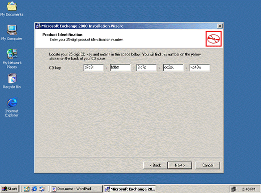Exchange 2000 necesita un Windows 2000 Server cu Active Directory intr-un domeniu Windows 2000. Odata instalat serviciul de NNTP se poate trece la promovarea sever-ului de W2000 Server,care trebuie sa aiba pus ultimul SP, la DC pentru a avea disponibila structura de Active Directory necesara pentru instalarea Exchange 2000 Server,astfel: