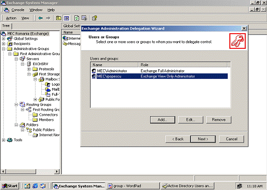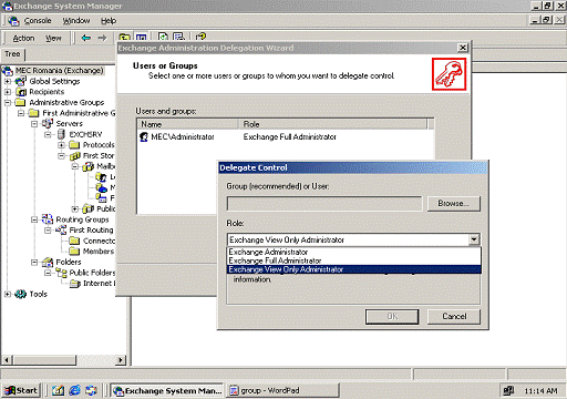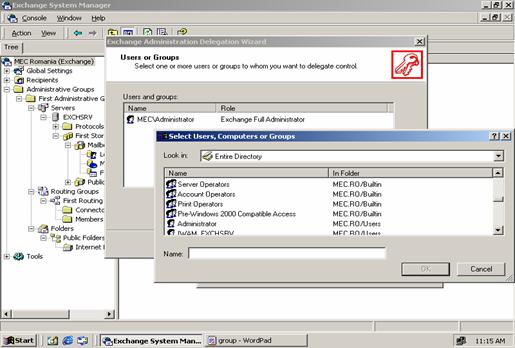 Avantajele acestei operatiuni sunt:crearea unui grup 'Exchange Domain Servers' ce contine toate calculatoarele ce ruleaza cu Exchange 2000 din domeniu,crearea unui grup 'Exchange Enterprise Servers' ce contine toate calculatoarele cu Exchange 2000 din forest,se pot da permisiuni de control pe cele 2 grupuri.