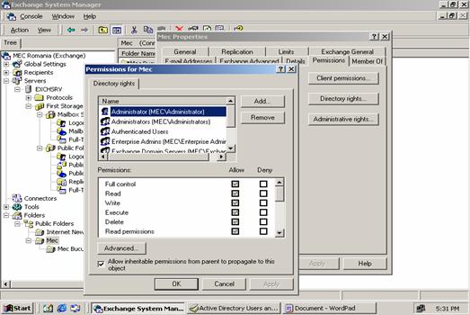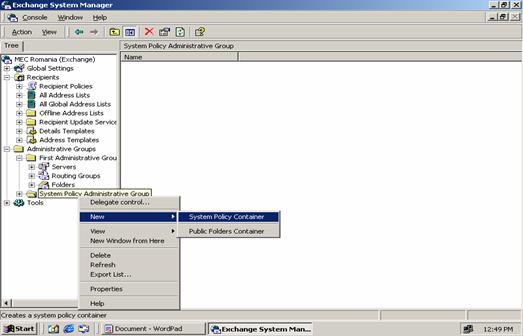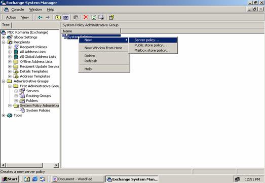 2.3) Folosirea Exchange 2000 SystemPolicy.