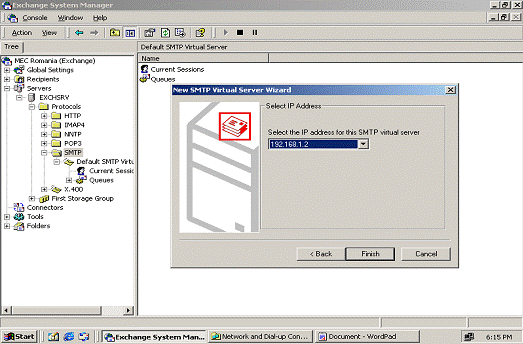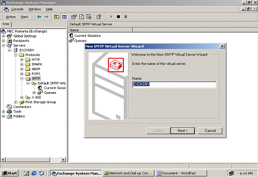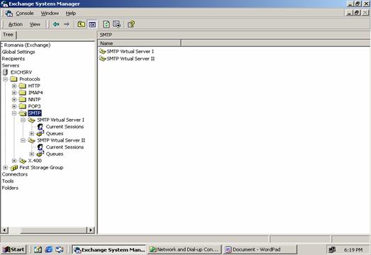 Pentru a creea serverul virtual avem : 'Exchange System Manager'-'Servers'-Name Server-'Protocols'-'SMTP'-New-SMTP Virtual Server-Nume Server.