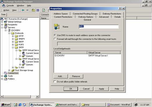 Cand de conecteaza la un grup de rutare SMTP conector rezolva adresa IP a serverului destinatie folosind inregistrarea DNS 'MX Exchanger'.Daca inregistrarea nu exista serverul sursa cauta sa rezolve adresa de IP a serverului destinatie interogand baza DNS pentru un alt tip de inregistrare A care are asocierea 'nume-ip address' pentru orice calculator.