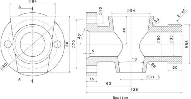Fig. 3.157. Desenul de executie al unui corp de robinet