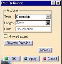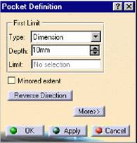 Se deseneaza profilul ,click Pocket, se introduce tipul si lungimea cavitatii ,click OK
