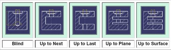 Gaura poate fi desenata in plin, pana la prima suprafata, pana la ultima suprafata, pana la un plan sau pana la o suprafata specificata.