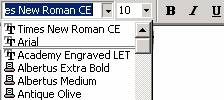 Selectarea tipurilor de litere se poate face din linia cu butoane de formatare ca in figura de mai jos