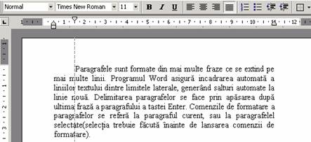 Paragrafele sunt formate din mai multe fraze ce se extind pe mai multe linii. Programul Word asigura incadrarea automata a liniilor textului dintre limitele laterale, generand salturi automate la linie noua. Delimitarea paragrafelor se face prin apasarea dupa ultima fraza a paragrafului a tastei Enter. Comenzile de formatare a paragrafelor se refera la paragraful curent, sau la paragrafele selectate(selectia trebuie facuta inainte de lansarea comenzii de formatare).