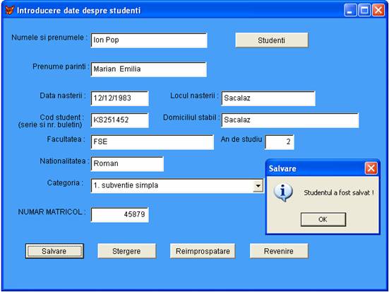 Introducere date studenti