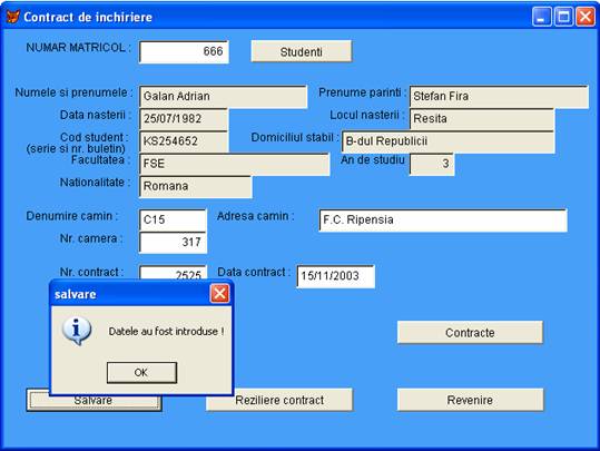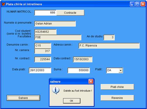 Messagebox('Datele au fost introduse !',64,'salvare ')