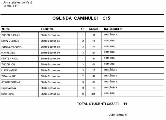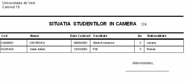 Situatia studentilor pe camere
