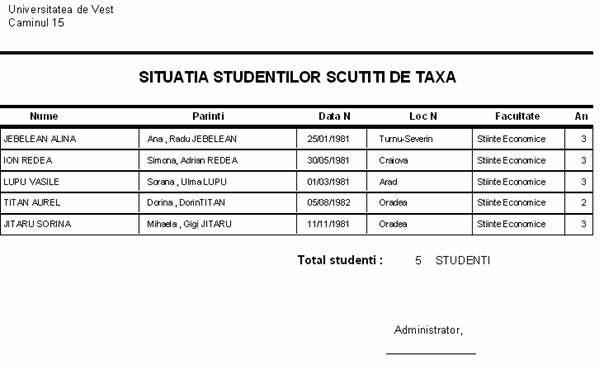 Situatia studentilor scutiti de taxa