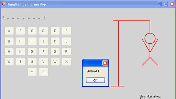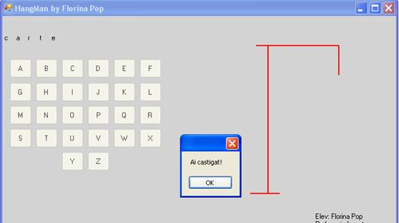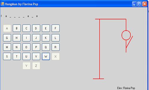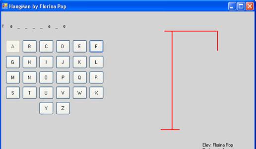 Jucatorul trebuie sa apese pe un buton ce reprezinta o cifra a alfabetului daca considera ca aceea cifra se afla in cuvantul dat .