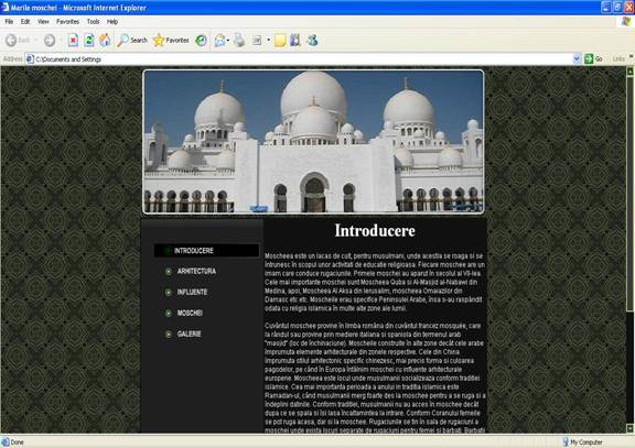 Galerie - galerie.html . In aceasta pagina sunt prezentate imagini cu moschei .