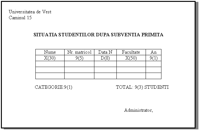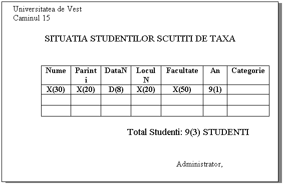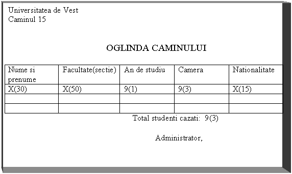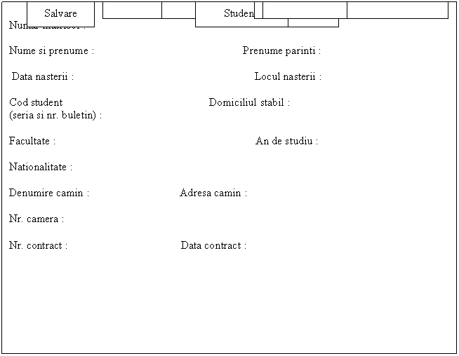 Actionand butonul "Situatia studentilor pe camere" se obtine forma cu acelasi nume care are urmatorul mod de alcatuire: