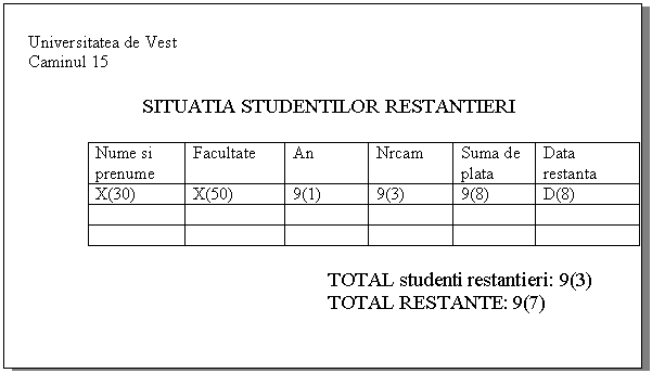 Pentru activitatea de evidenta a studentilor vom defini ca fisier variabil: