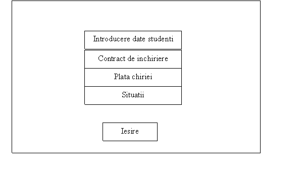 In continuare vom prezenta modul de alcatuire a meniurilor si submeniuri si intrefata cu utilizatorul: