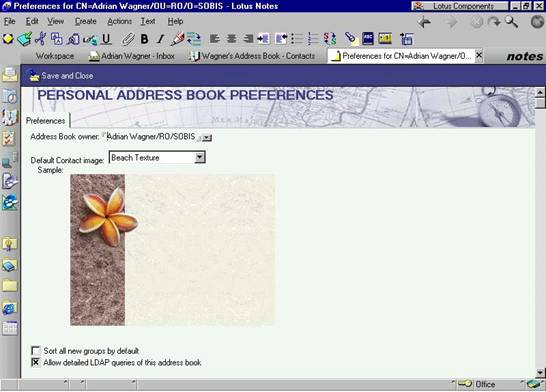 Cand deschideti Notes R 5.0 Personal Address Book pentru prima data, aveti posibilitatea sa setati modul in care aceasta va fi afisata precum si unele functionalitati, din fereastra Personal Address Book Preferences, asa cum se poate vedea si in figura 1: