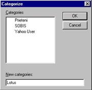 In aceasta fereastra de dialog, puteti asigna contactele unei categorii existente prin click pe categoria respectiva si in acest moment categoria va fi selectata cu un checkmark. Prin click o puteti deselecta. O categorie noua se creaza introducandu-i pur si simplu numele (Lotus in figura 5). Apoi apasati OK.