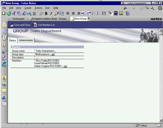 Dati click pe butonul Add Group sau pe butonul Add Mailing List. O lista de mail este tot un grup, dar destinat exclusiv trimiterii de email. Notes va afisa formularul de grup, asa cum se vede in figura 6: