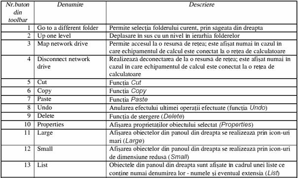 Tabelul de mai jos contine descrierea butoanelor din toolbar.