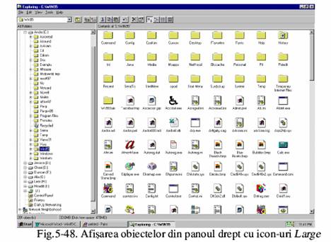 Large Icons: afisarea obiectelor in panoul din dreapta a ferestrei Explorer se realizeaza utilizand icon-uri mari, ca in figura de mai jos.