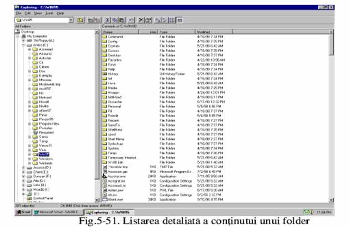 List: obiectele din panoul drept al ferestrei Explorer sunt afisate in cadrul unei liste ce contine numaidenumirea acestora (si eventual extensia, in cazul fisierelor).