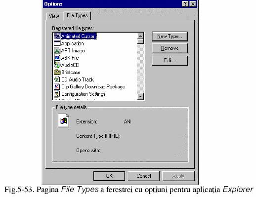 Exercitiu 5-62: Din lista afisata pe ecran a tipurilor de fisiere inregistrate selectati Animated Cursor. Care este tipul de fisier asociat?