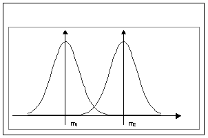 Pentru a putea rezolva aceasta problema, se poate studia intervalul de confidenta al mediei in fiecare esantion. Daca intervalele de confidenta se suprapun mult, toate valorile care cad in zona de suprapunere pot apartine atat unei distributii, cat si celeilelte, iar diferenta observata poate fi datorata variatiei de esantionaj (hazardului) - Figura 8.52.