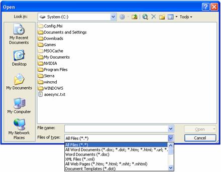 nu stiti extensia acestuia puteti alege din Files of type, optiunea All Files (*.*). Dupa