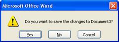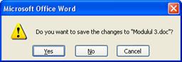 unde optiunea Yes face salvarea, No inchide fara salvare si Cancel te intoarce la document.