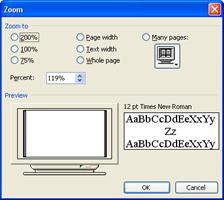 Modificarea dimensiunii paginii se poate realiza din meniu View - Zoom: