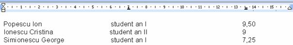 Selectarea randurilor: click cu mouse-ul in exteriorul stanga al randului, atunci cand cursorul devine o sageata alba.