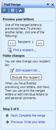 Pasul 6 Aceasta este ultima etapa din Expertul pentru imbinarea corespondentei! Optati pentru Imprimare. daca doriti sa imprimati scrisorile sau pentru Editare scrisori individuale. daca doriti sa va personalizati corespondenta. |