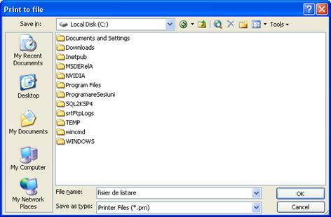 Dupa previzualizarea documentului trecem la listarea lui (pe hartie sau in fisier).