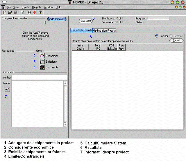 Din aceasta fereastra rincipala a programului se porneste catre alegerea componentelor si in toate celelalte functii ale programului.Urmatorul pas este optimizarea si simularea sistemului fotovoltaic in conformitate cu dimensionarea realizata in capitolul 3.