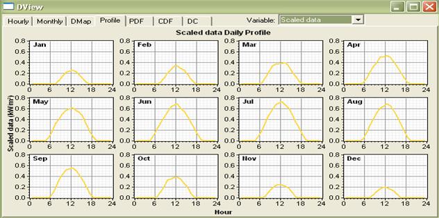 Tabelul cu impartirea consumului pe ore este prezentat in ANEXA B1. Pe de alta parte este necesara si o statistica asupra datelor meteo, radiatia solara medie pe luna, disponibila pentru o anumita coordonata geografica (CONSTANTA 44o.5' N 28o.38' E). Aceasta statistica este oferita de
