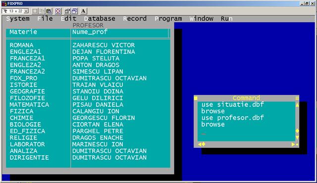 Dupa ce a fost creata o tabela, aceasta se afla in stare 'deschis'. Aceasta inseamna ca respectivul fisier este deschis si se pot astfel efectua operatii (adaugare, modificare, afisare etc) asupra datelor respective. Pentru a deschide o tabela deja existenta, folosim comanda: