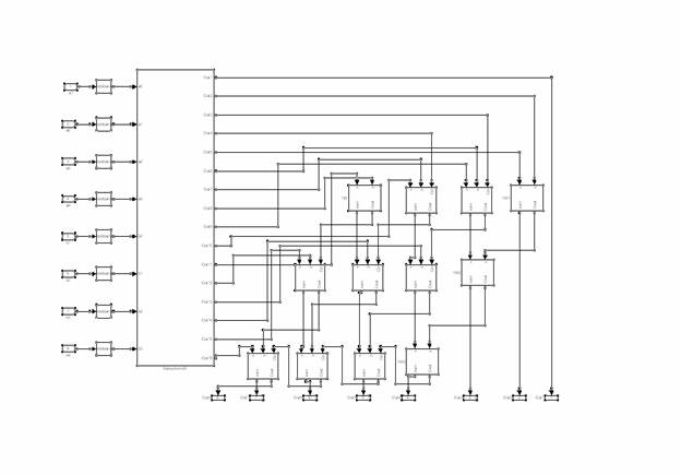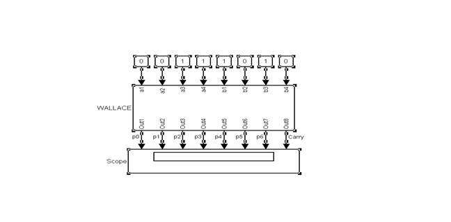 Structura compacta a multiplicatorului este prezentata in figura urmatoare, incluzand si 8 constante pentru verificarea functionarii acestuia :