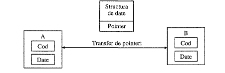 Este aplicabila in cazul unor module independente, care pot sa-si transmita unul altuia date printr-un mecanism software (figura 6.). Aceasta este cea mai sigura metoda de comunicare. Datele pot fi modificate la un moment dat numai de citre un singur modul, cel care defineste controlul lor.
