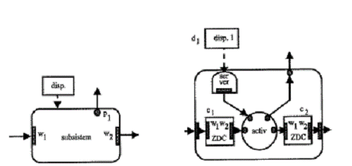 Un subsistem este o colectie de activitati, zone de date pentru comunicare, served si alte subsistence, formand impreuna o diviziune logica a unui sistem. Subsistemele comunica intre ele prin intermediul porturilor si ferestrelor. Activitatile si zonele comune de date pentru comunicare pot fi considerate ca fiind cazuri speciale de subsisteme. Descompunerea sistemului continua prin definirea detaliilor interne ale fiecarui subsistem (bloc). Unele dintre aceste blocuri (activitati, ZDC-uri si serveri) pot fi descompuse in continuare.