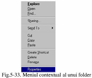 2. Folderul este selectat cu un click al butonului din dreapta al mouse-ului, moment in care este afisat meniul contextual al acestuia, similar cu cel din figura 5.33. Din optiunile meniului de mai sus se selecteaza Properties