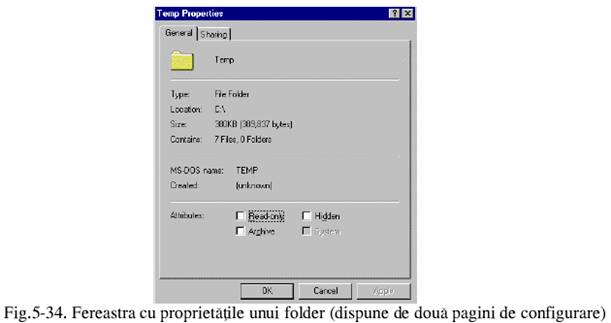 Indiferent de metoda aleasa, proprietatile unui folder sunt afisate intr-o fereastra ca in figura 5-34.